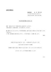 2025年年末年始休業のお知らせ